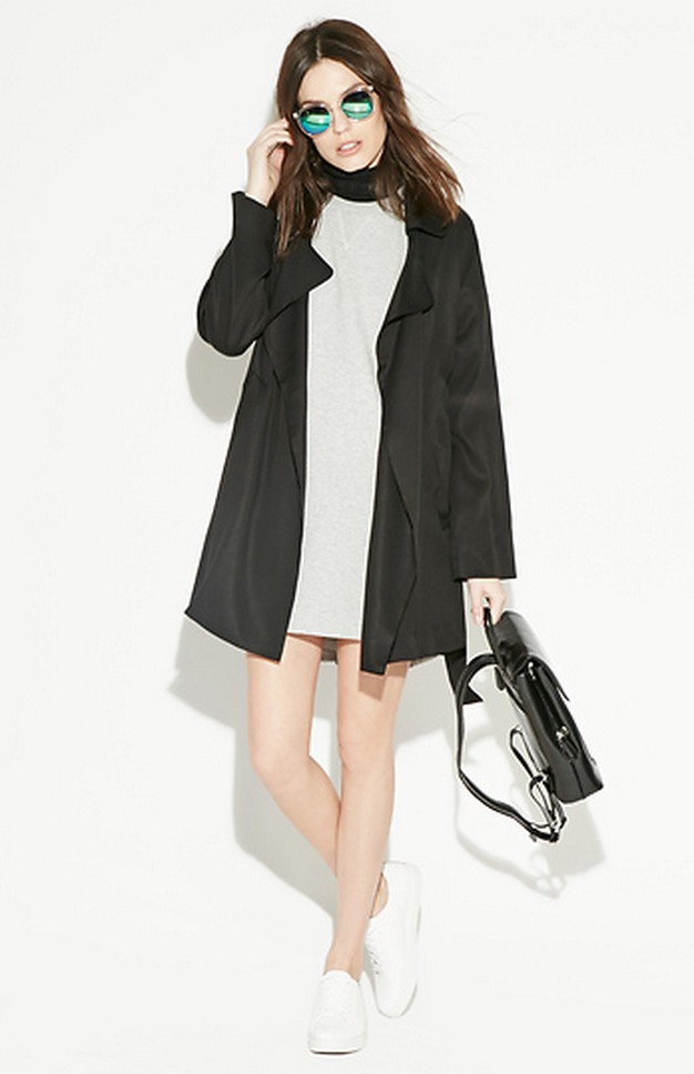You can get away with wearing your plain summery dress this time of year. The trick is layering with a printed jacket, and finishing off the look with a pair of canvas sneakers for that you-can-chill-with-me vibe. Hint—this outfit is perfect for a day date.