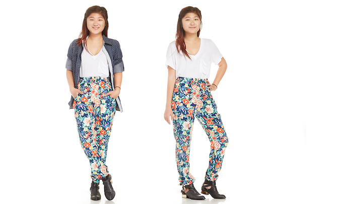 I paired the white Gauzy Tee with the MINKPINK Acid Bloom Jogger Pants and a polka dot Chambray shirt because I love mixing patterns. I am a true believer of one wearing whatever one wants. So I do not have one specific style, but I'm a mixture of Femme, Boho and Contemporary. I enjoy looking cute, youthful and bold.