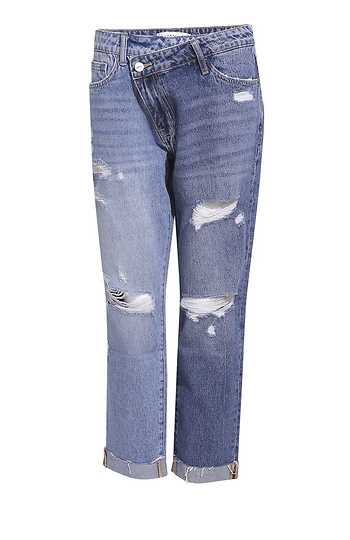 Ceros High Rise Cross Waist Distressed Boyfriend Jean